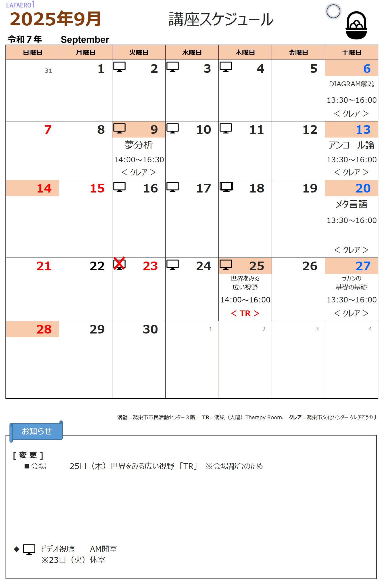 PDF :⇨ LAFAERO1_202509_講座スケジュール