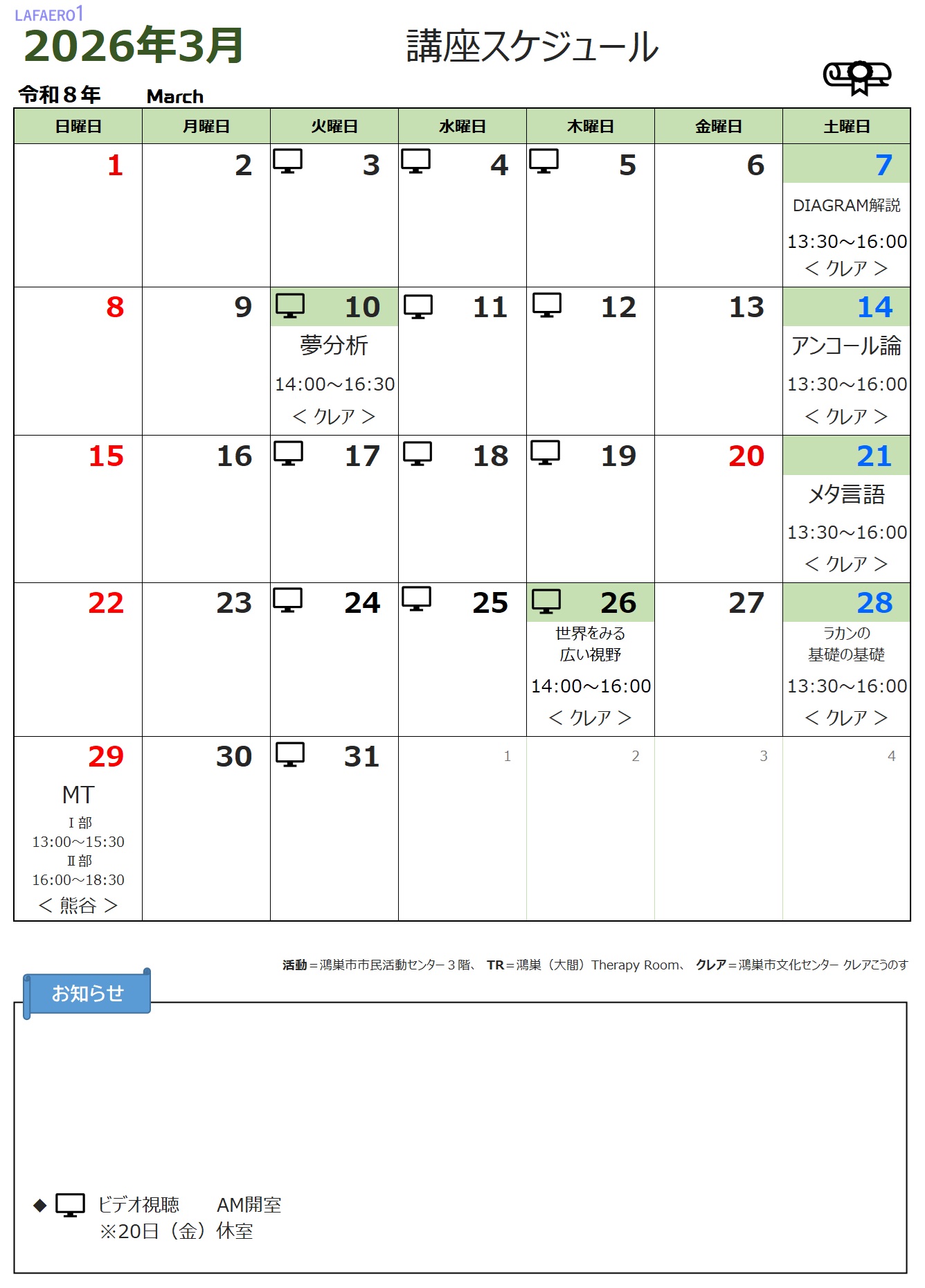 PDF :⇨ LAFAERO1_2026_03_講座スケジュール