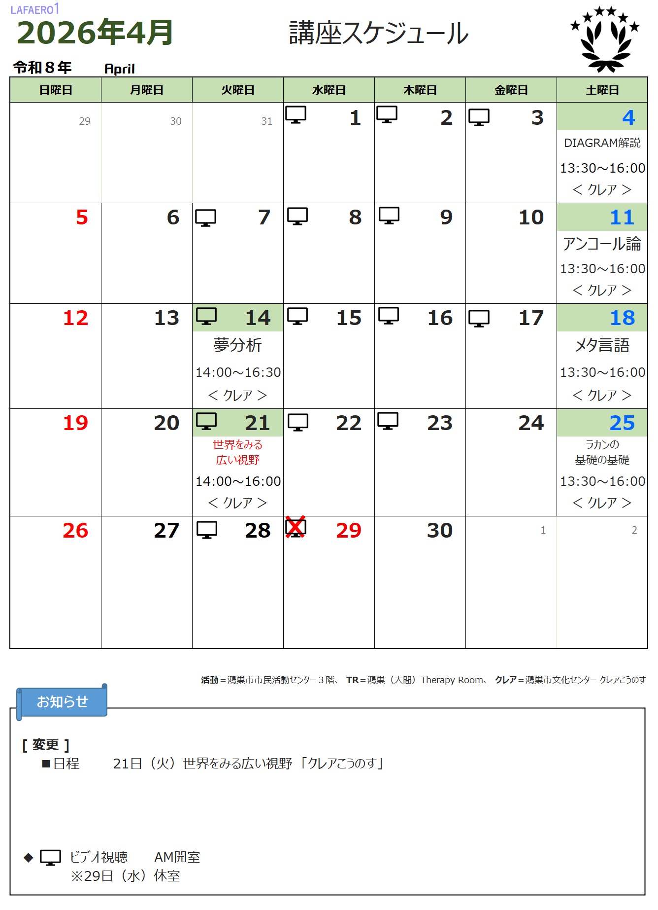 PDF :⇨ LAFAERO1_2026_04_講座スケジュール